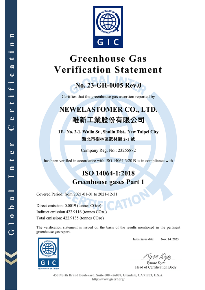 ISO 14064-1溫室氣體盤查查驗聲明書