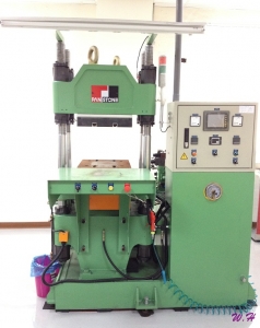 自動式油壓機,可自行設定溫度、壓力及時間,進行膠料成型之動作。