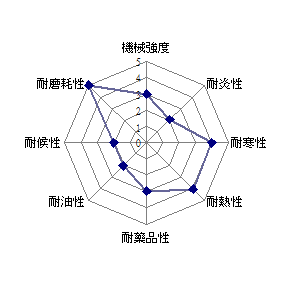 耐摩耗優秀、 反彈性高、 動性發熱少、低溫特性優秀,即結晶化溫度低、用於輪胎花紋時, 具有良好的牽引力。
